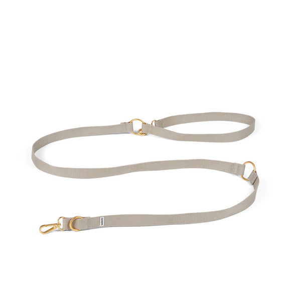 Simple elegance with a sporty touch. Made by two coloured woven cotton, dirt repellant. The buckles in mat imitation gold gives the collar an air of elegance. This collar can simply dress your dog.