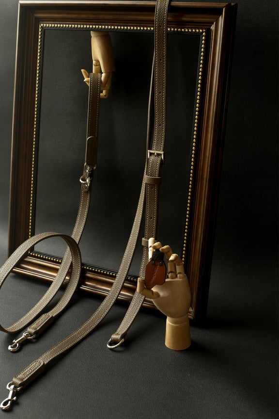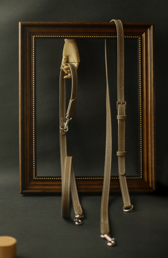 This thoughtfully designed leather lead offers two functional options, combining practicality and style. It includes a standard lead and an adjustable crossbody strap, making it ideal for everyday walks.