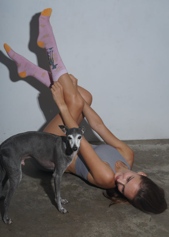 Celebrate the adventurous spirit of the Italian Greyhound with these playful hiking-inspired socks. Knitted from pure cotton for comfort and breathability, they feature our signature “Iggy on the trail” illustration — a loyal greyhound geared up with his water bottle, ready to conquer new paths. Designed for humans who adore the breed, these socks are soft, durable, and a stylish reminder that life’s best adventures are taken with dogs by our side.