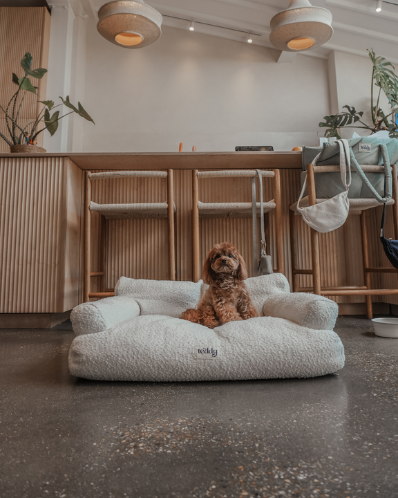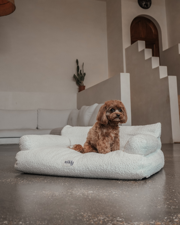 Crafted from durable, premium bouclé fabric, this elevated dog bed is thoughtfully designed to blend seamlessly into your home. With its structured silhouette and soft, supportive cushioning, The Teddington offers your dog a space of their own, without compromising yours.